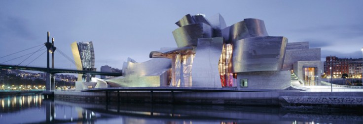 Dessiné par l’Américain Frank Gerhy, sa silhouette extraordinaire est faite d’un assemblage de pierre, de verre et de titane. Le musée devient rapidement un des bâtiments contemporains les plus connus au monde, qui a œuvré au renouveau et à la notoriété de la ville. On a même donné à ce phénomène le nom de « Effet Bilbao ».