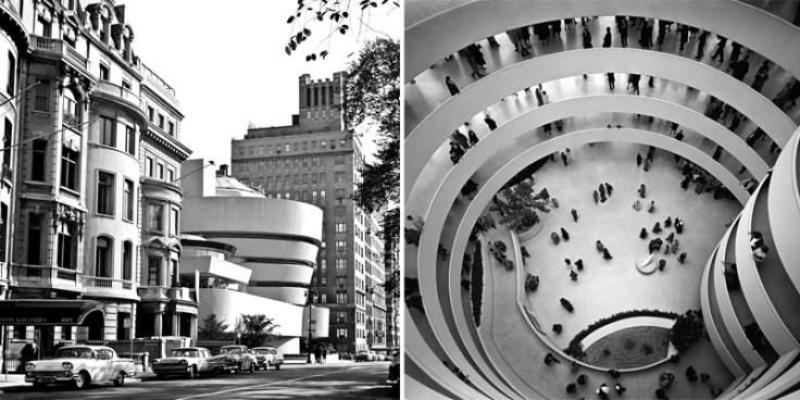 Voilà un musée conçu par le plus grand architecte américain Frank Lloyd Wright, à la demande de Salomon Guggenheim, richissime industriel américain, passionné collectionneur d’art abstrait, qui voulait un écrin pour ses collections. Wright fut chargé de concevoir le bâtiment en 1943 mais ne vit jamais son oeuvre terminée car il mourut 6 mois avant l’inauguration officielle du 21 octobre 1959.