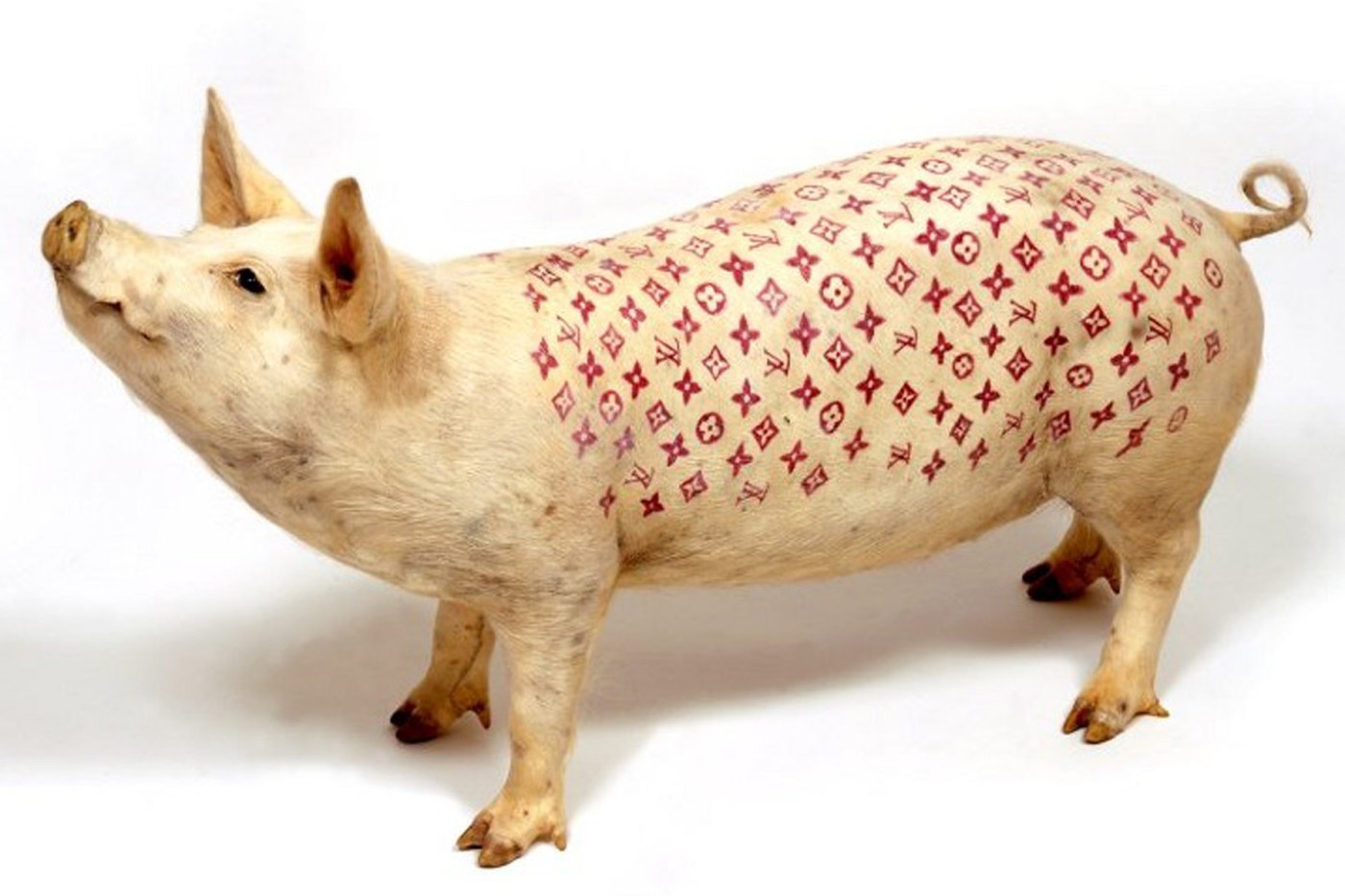 Tout chez Delvoye rapporte à l’épiderme, cette surface mince qui cache ce que l’on aimerait ne pas regarder. Comme ces cochons vivants tatoués, certains de scènes bibliques profanées, tel un Mickey Mouse crucifié ou d’autres décorés de logos Vuitton ou Chanel. Contraste en effet car comme disait l’artiste lui-même «le cochon c’est la tirelire du pauvre, l’art, celle du riche». Par Delvoye, l’animal habituellement engraissé à la hâte pour être abattu, change de statut et devient œuvre d’art et peut vivre ainsi une vie complète bien plus longue et confortable que ces congénères.