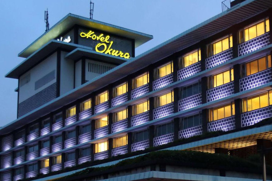 En mai 1962 on inaugure dans le quartier de Toranomon à Tokyo, l’Hotel Okura, œuvre de l’architecte Yoshiro Taniguchi. L’Okura tient toutes ses promesses, superbe représentation du style moderniste qui démontre que le Japon s’est bien remis des cruelles dévastations de la guerre et entre ainsi, avec les Jeux Olympiques approchants, dans une ère nouvelle de modernité, de croissance et de paix.